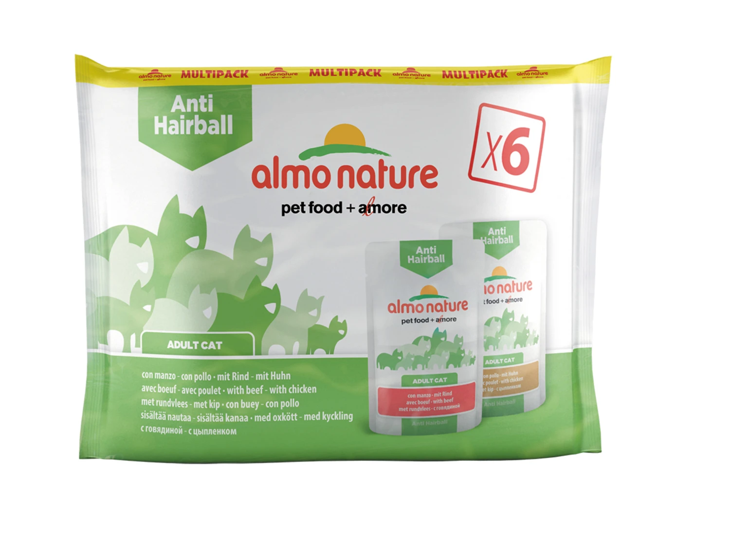 Almo Nature Cats MultiPack Anti-Hairball- Rund & Kip 6x70g