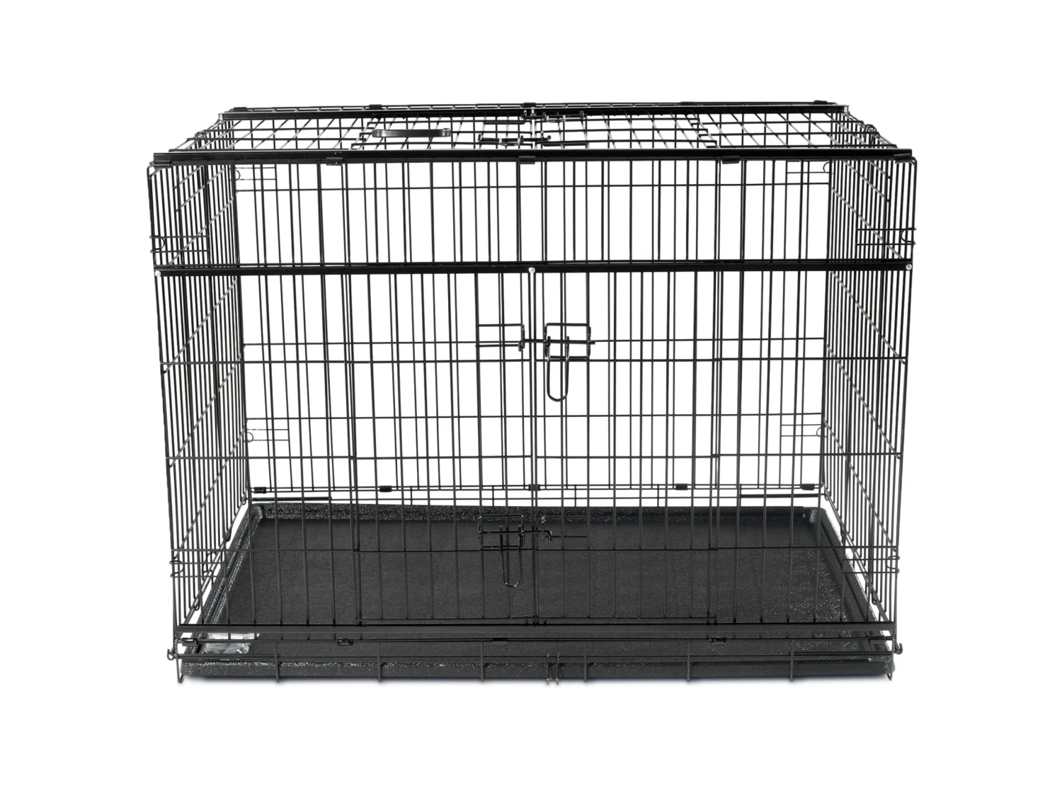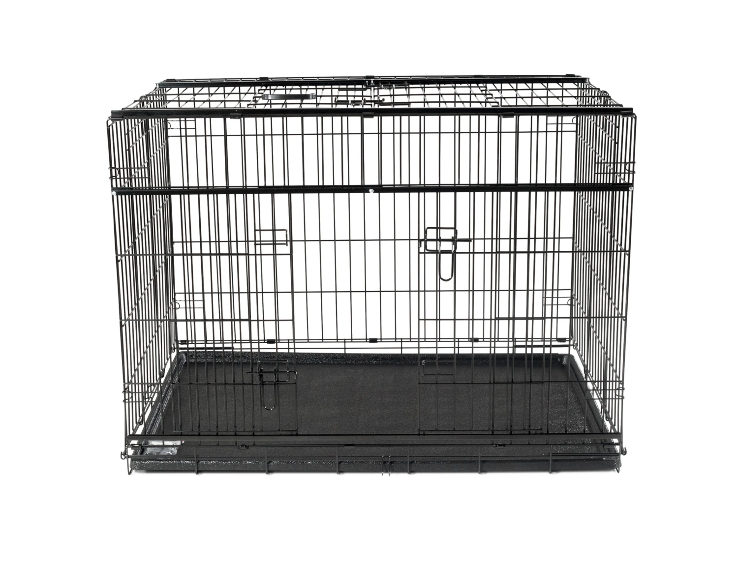 Met een metalen draadkooi kunt u uw hond veilig transporteren. De kooi kan ook binnen gebruikt worden als rustplaats. Uitgerust met een stevig handvat.