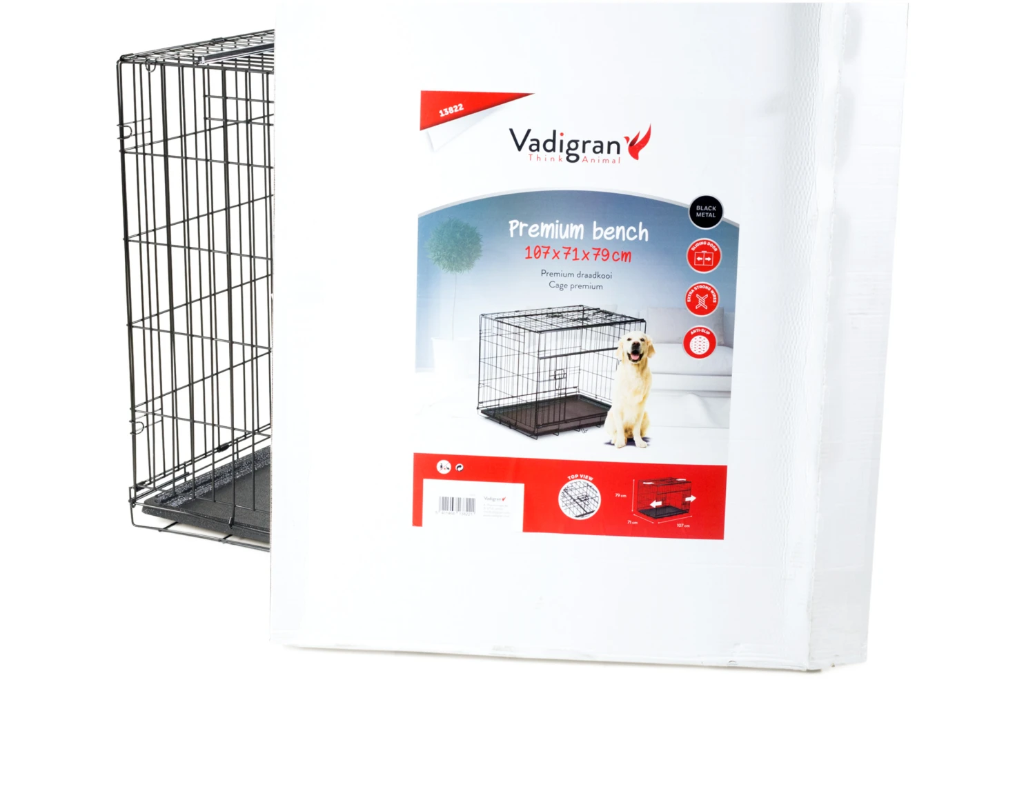 De bovenkant en de zijkant van de Premium kooi zijn beiden uitgerust met een schuifdeur. Het voordeel van een schuifdeur is dat je hond niet per ongeluk de deur kan sluiten en zo niet meer binnen kan. Via de bovenkant heeft u toegang tot de kooi terwijl je hond moeilijk zal kunnen ontsnappen.