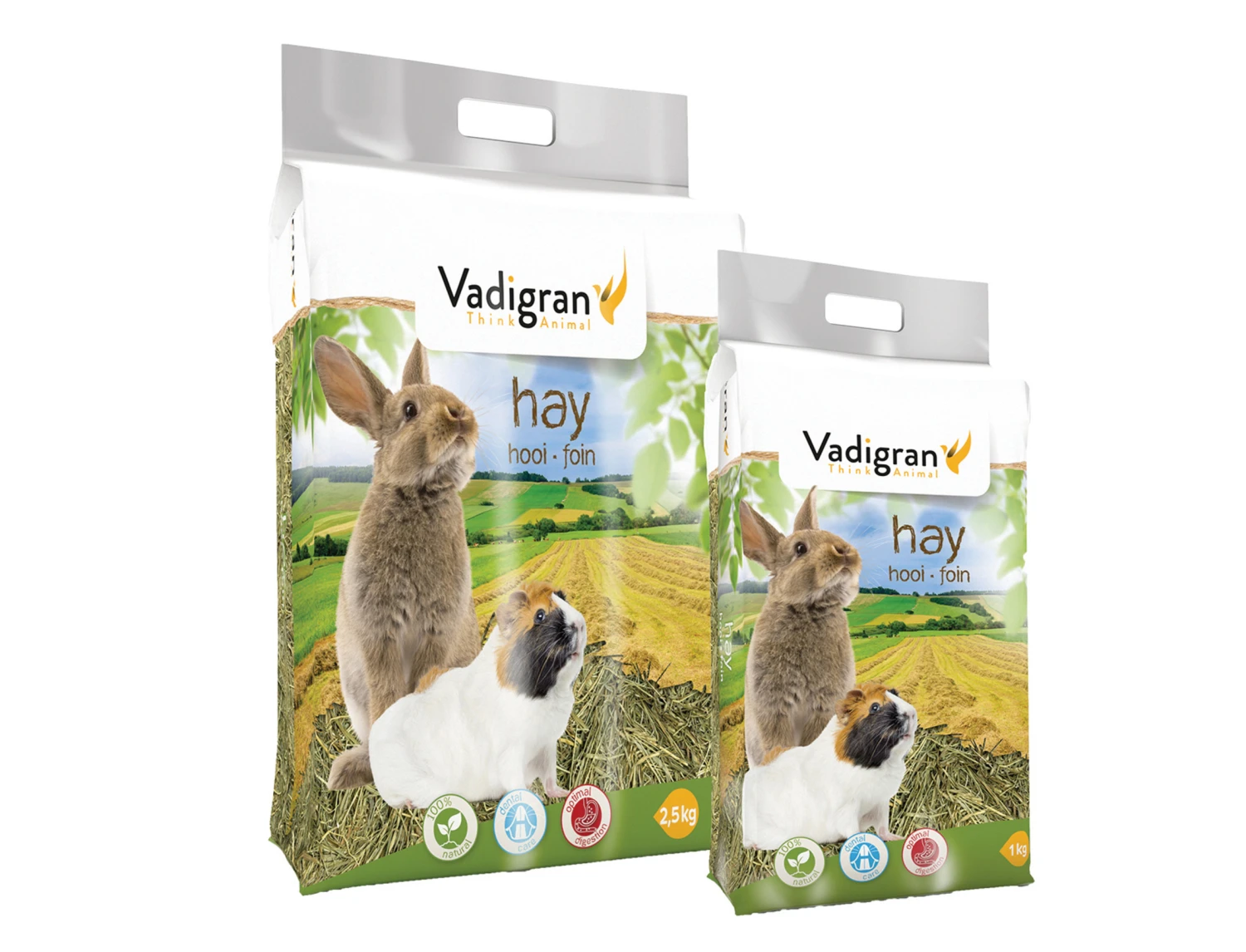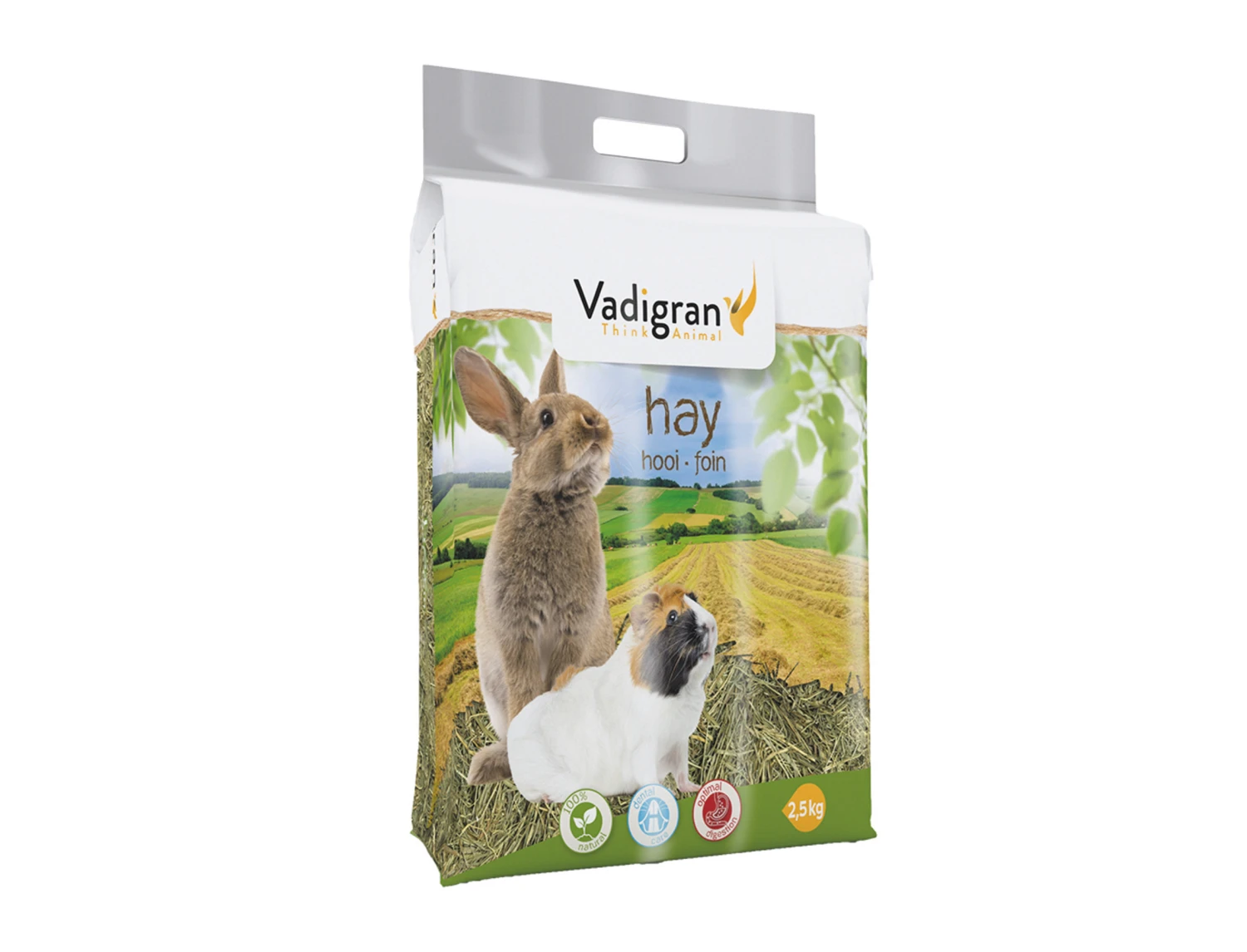 Het Vadigran hooi is een 100% natuurlijk product dat u kan gebruiken als ruwvoeder voor uw knaagdieren. Vanwege de vele voedingvezels ondersteunt hooi de goede pijsvertering van uw knagerU kan ook wat hooi in de kooi strooien om een warme en knusse omgeving te creëren.Na gebruik bij het GFT-afval of op de composthoop gooien.