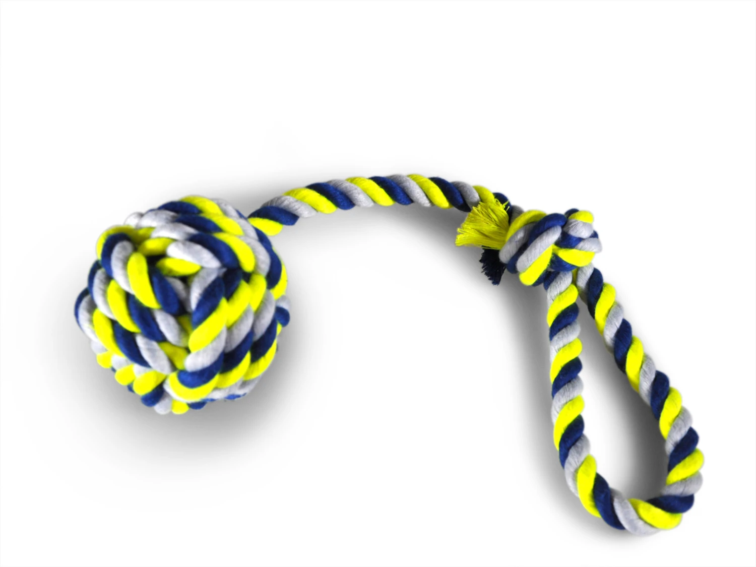 Katoenen Koord+handvat+bal Ø10,5cm Blauw-geel 54cm