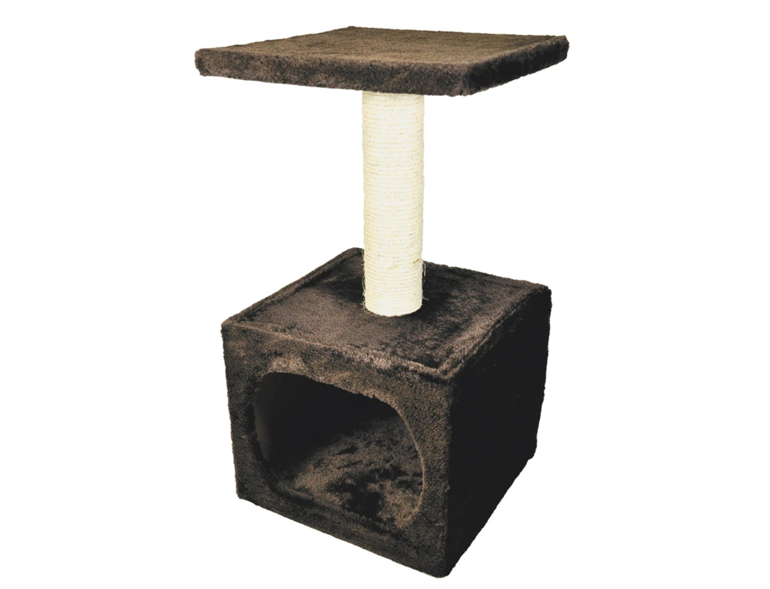 Kleine, zeer stabiele krabpaal met een platform en een schuilplaats.