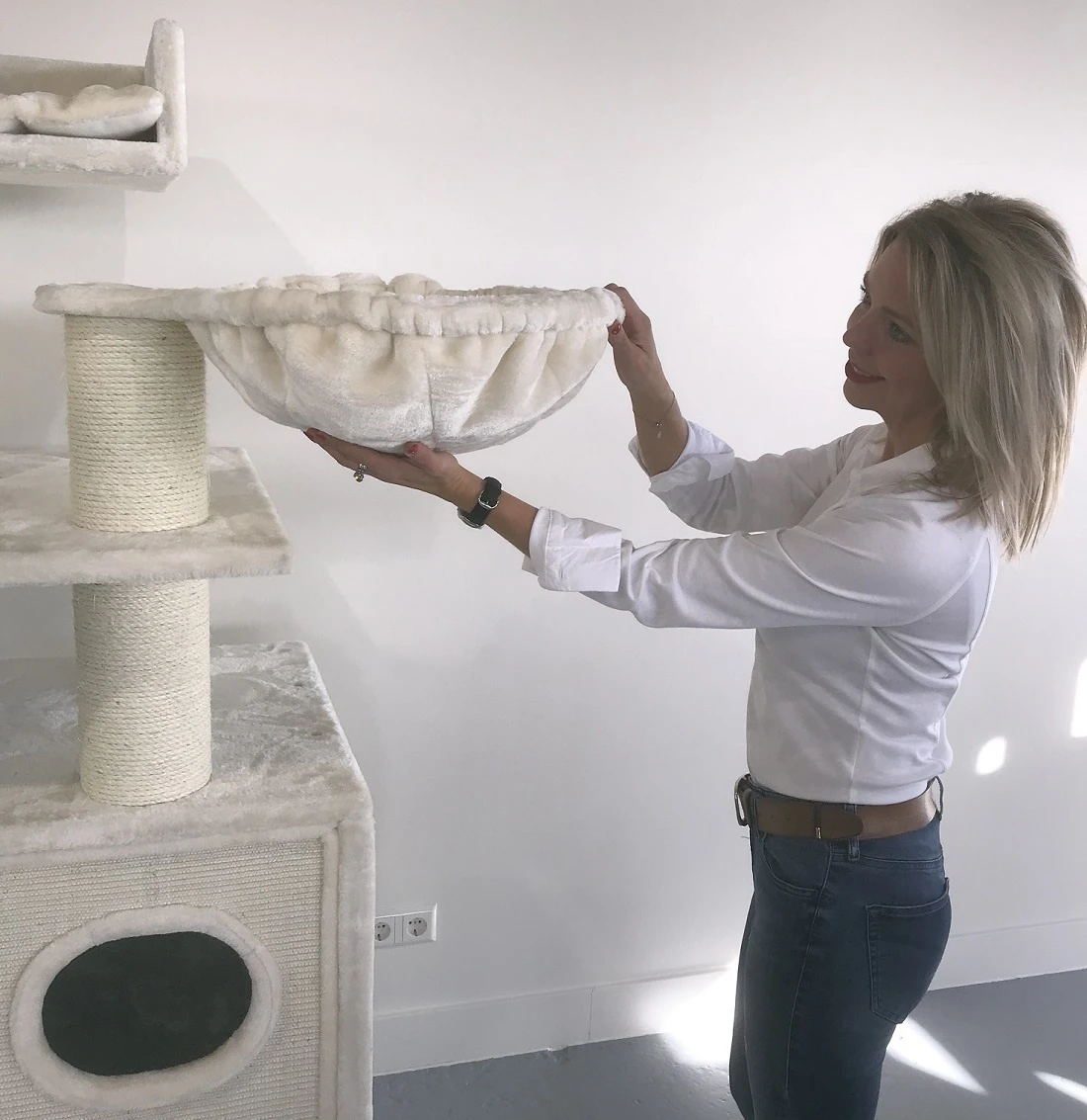 De speciale hangmatten bovenin (Combinatie tussen een hangmat en een kussen) zijn wel 45 cm in diameter en zijn getest tot wel 20 kg draaggewicht. Deze zijn gemaakt van extra dik en super zacht pluche.