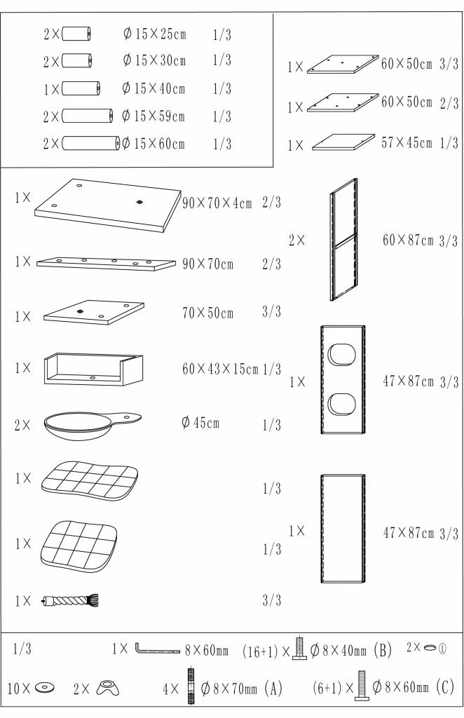 – Sisalpalen zijn Ø 15 cm en het 6 mm dikke natuursisal is verlijmd aan de palen. (Mocht uw kat het sisaltouw doorkrabben “rolt” het touw niet naar beneden).