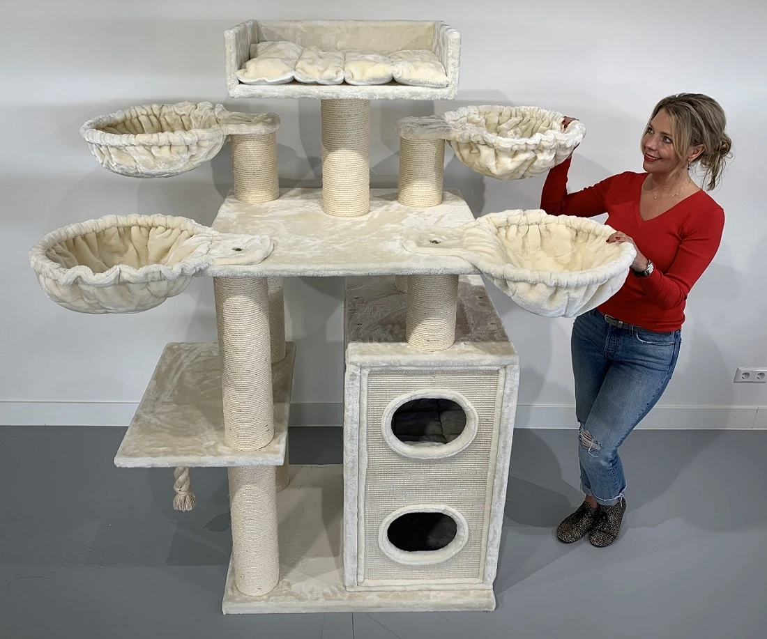 De krabpaal voor grote katten Cat Paradise Cream van RHRQuality is een paradijs voor katten welke erg groot en stevig is, met Ø 15 cm dikke sisalpalen en ruim 80 KG totaalgewicht. Zeer geschikt voor grote of zware katten.