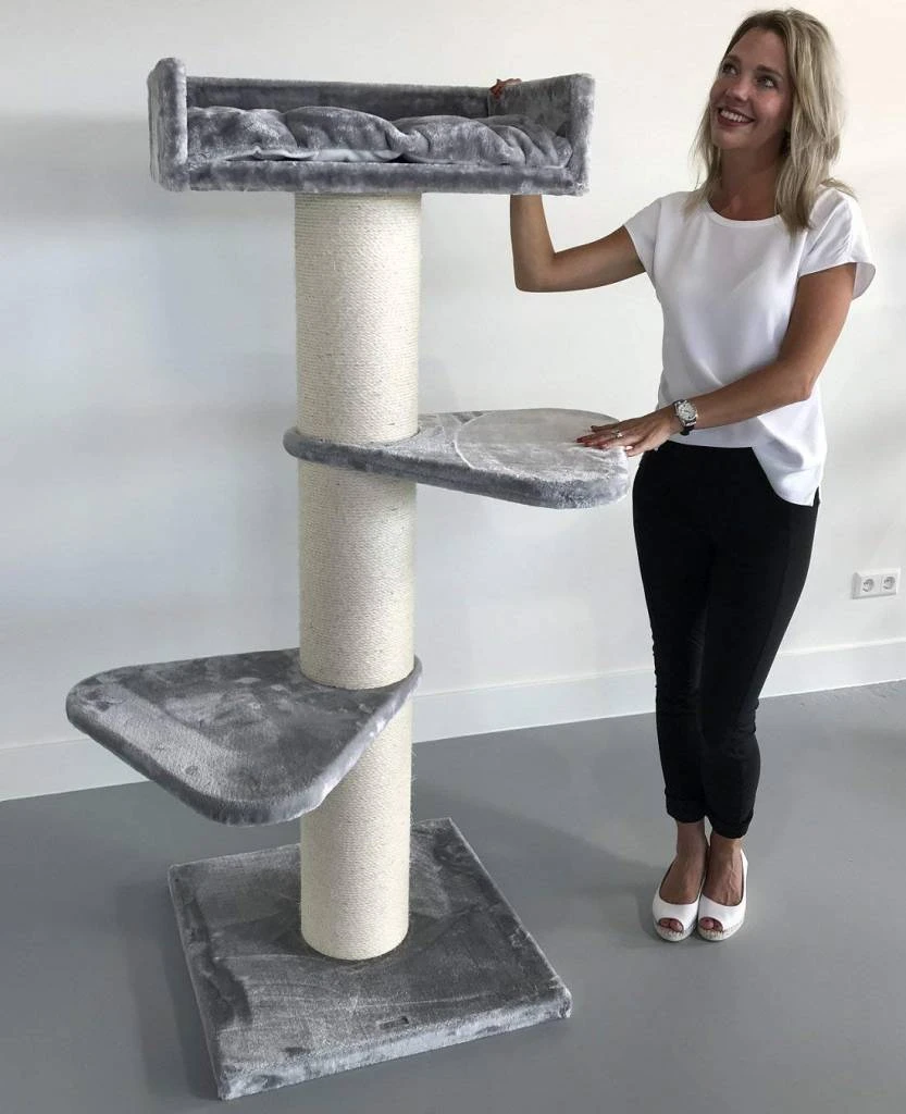 Krabpaal Royalty Light Grey is een zeer stevige krabpaal met zijn 20cm diameter dikke sisalpalen en verzwaarde bodemplaat van 60×60 en 4 cm dik.