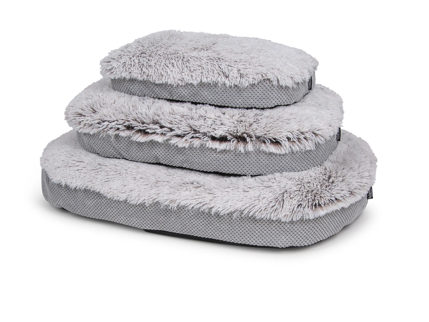 Kussen met langharige pluche aan 1 zijde en andere zijde bekleed met zachte stof