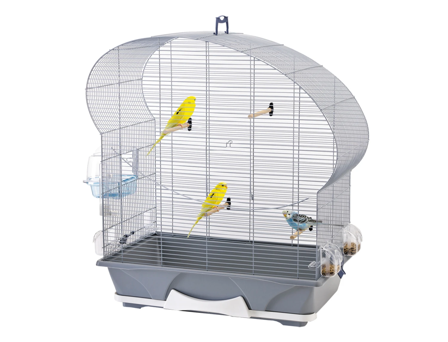 De kooi Ellipse 50 is een kooi die speciaal is ontworpen voor kleine vogels zoals kanaries, kleine exotische vogels, kleine parkieten,…). Goed uitgerust, de kooi beschikt reeds over alle essentiële accessoires voor je vogel.Ze is uitgerust met: een verwijderbare lade voor eenvoudig reinigen, 2 eetbakjes, 3 zitstokken, 1 bad en een handvat voor eenvoudig transport. De onderkant van de kooi kan ook gemakkelijk worden verwijderd dankzij 2 clips voor eenvoudig onderhoud.