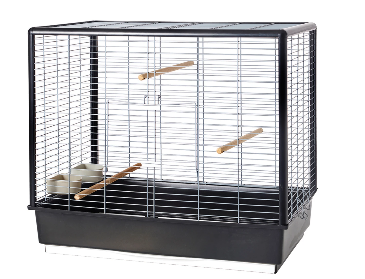 De Noah is een zeer ruime kooi. Grote voordeur voor gemakkelijke toegang. Wordt geleverd met 3 houten zitstokken en 2 voerbakken – ideaal voor valkparkieten. De staafafstand is 16 mm.