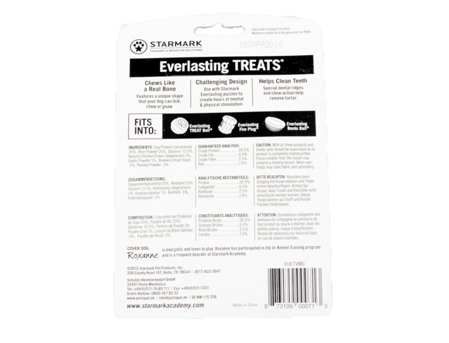 Gerbruik in combinatie met de Starmark Everlasting “Treat Ball M” (1883), “Fire Plug M” (4681) of “Bento Ball M”(4684) om je hond uren mentaal en fysiek te stimuleren.Je hond kan hier op kauwen zoals op andere snacks. Door de unieke vorm kan je hond er ook aan likken of knabbelen. Met kip smaak.Verkrijgbaar in Small, Medium en Large.