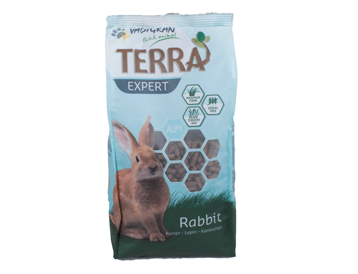 TERRA Expert konijn is een compleet voeder voor alle huisdier-konijntjes.Alles in één brokje; geen selectief eetgedrag mogelijk. Op basis van Timothee hooi.Lekker en gezond dankzij de toevoeging van wortelen, lijnzaad, veenbessen en kruiden.