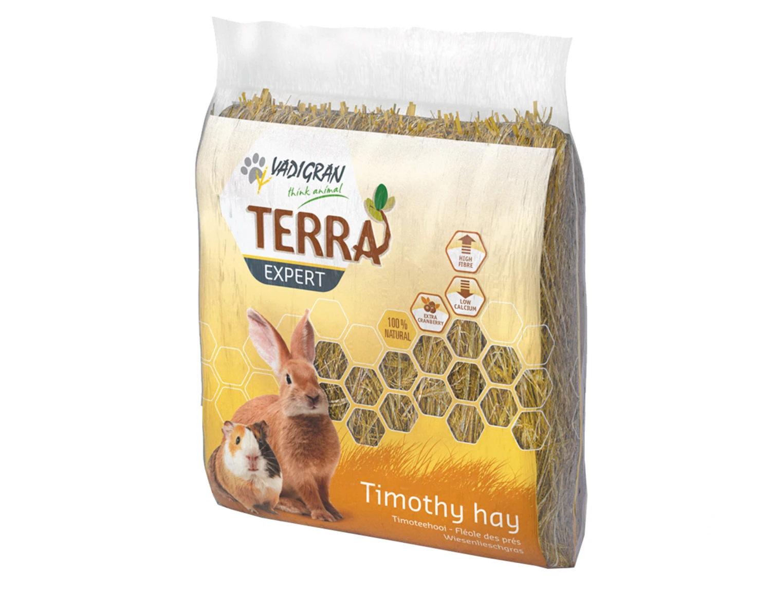 TERRA Expert Timothy hooi is een uitermate geschikt ruwvoeder voor konijnen en herbivore knaagdiieren.Lange, zuiver natuurlijke vezels: ideaal voor zowel de spijsvertering als voor het natuurlijke knaaggedrag.Heerlijk en gezond: de veenbessen zijn goed voor de urinewegen. Vrij ter beschikking stellen.Timotee bevat van nature weinig calcium: ideaal voor kleine dieren die gevoelig zijn voor blaas- of niergruis enz
